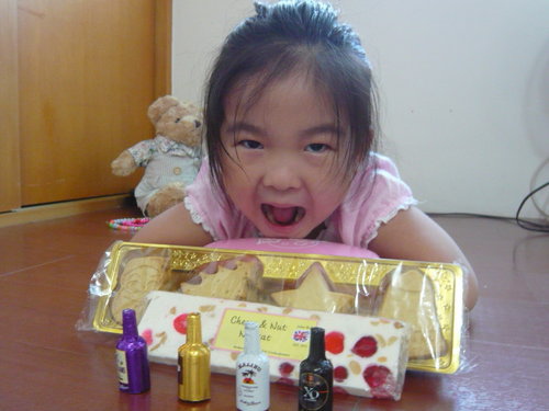 終於從英國自助旅行回來的Connie 阿姨,買了超可愛聖誕節造型的牛油餅乾,送給甄妹和姐姐吃.....